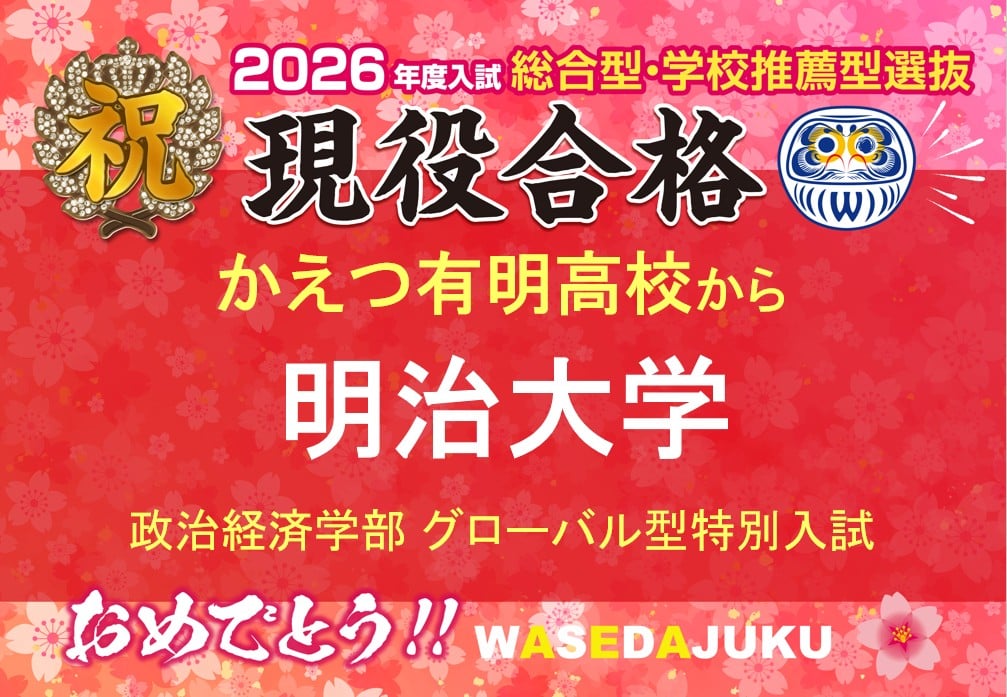 【2026年度入試 現高3生】かえつ有明高校から、明治大学 政治経済学部へグローバル型特別入試で見事現役合格!
