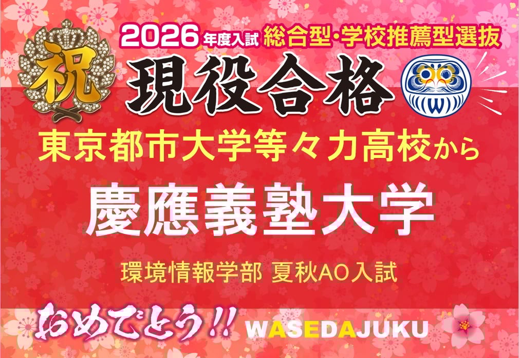 【2026年度入試 現高3生】東京都市大学等々力高校から、慶應義塾大学 環境情報学部へ夏秋AO入試で見事現役合格!