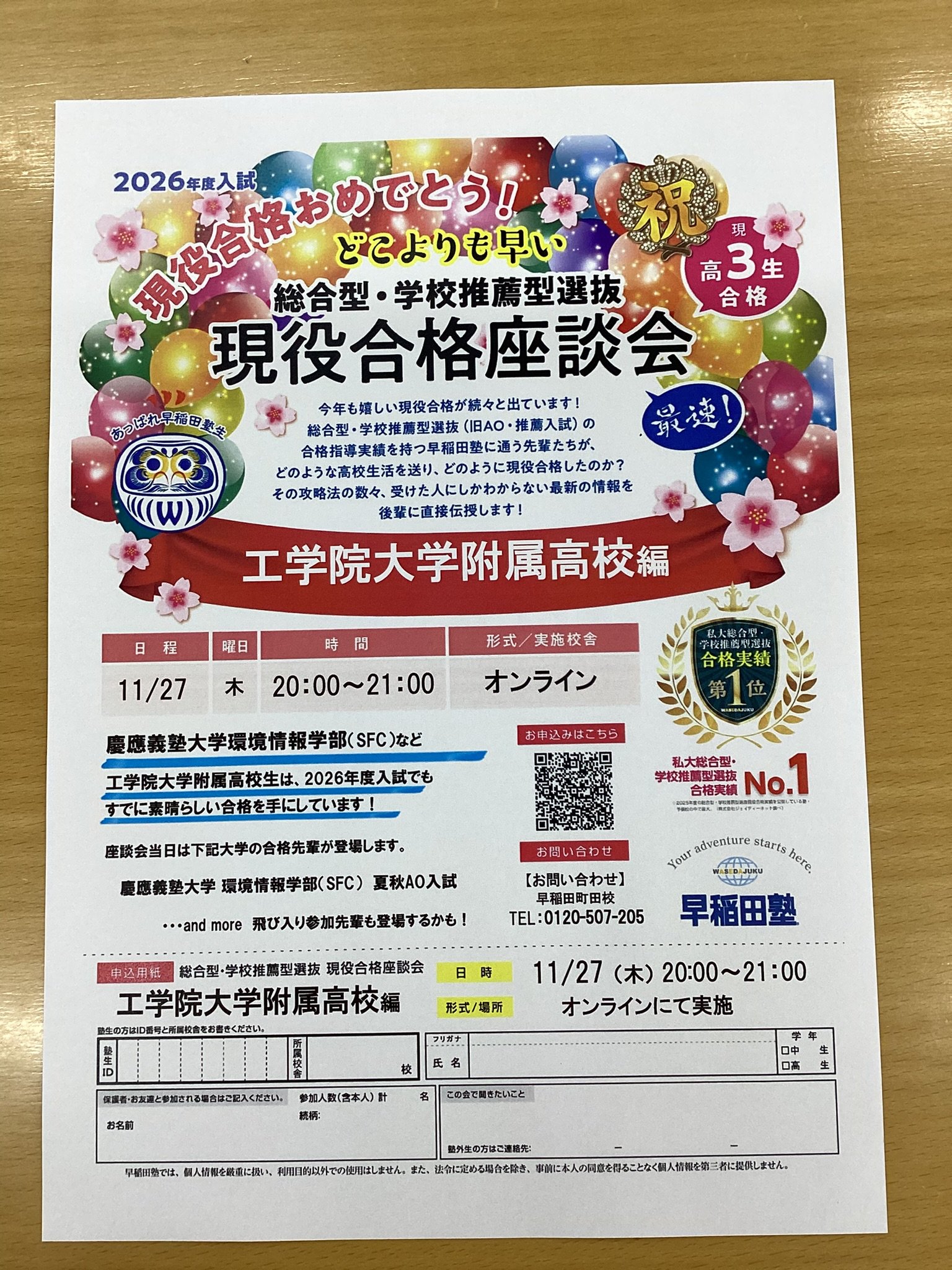 【工学院大学附属高校生必見!】どこよりも早い 総合型・学校推薦型選抜 現役合格座談会 開催実施のお知らせ