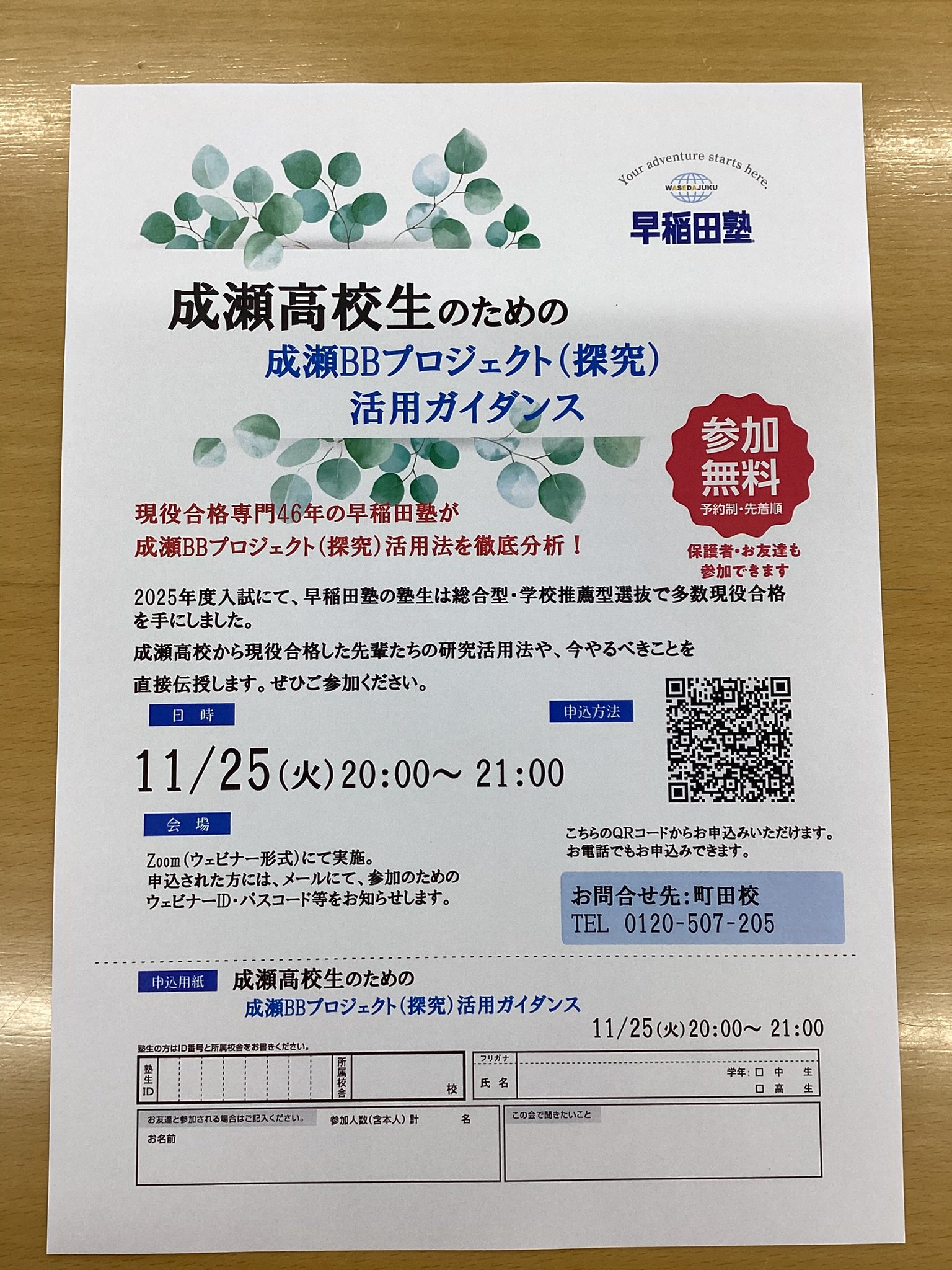 皆さんこんにちは!今回は、『【成瀬高校生必見!】成瀬BBプロジェクト(探究)活用ガイダンス 開催実施のお知らせ』です!
